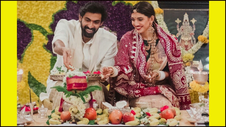 రానా దగ్గుబాటి అతని భార్య మిహీకా బజాజ్ శనివారం రామానాయుడు స్టూడియోలో వివాహం తరువాత హైదరాబాద్లోని తన ఇంటిలో సత్యనారాయణ పూజలు చేశారు. ప్రస్తుతం ఈ నూతన వధూవరుల చిత్రాలు సోషల్ మీడియా లో హల్ చల్ చేస్తున్నాయి.మిహీకా ఆకుపచ్చ బంగారు చేనేత చీరతో పాటు పెళ్లి ఎర్ర దుప్పట్టా ధరించి ఉండగా,రానా దగ్గుబాటి తెలుపు కాటన్ పంచ కట్టా ధరించి ఉన్నారు. రానా దగ్గుబాటి మిహీకా బజాజ్ వారి కుటుంబంతో కలిసి ఈ పూజ కార్యక్రమం చేసారు. ఈ పూజలో రానా దగ్గుబాటి తండ్రి సురేష్ బాబు, చిన్నాన వెంకటేష్, సమంతా, నాగ చైతన్య ఇతరులు కలిసి ఈ నూతన వధూవరులతో సంతోషంగా పూజలో పాల్గొన్నారు. ప్రస్తుతం సత్యనారాయణ పూజ కార్యక్రమంలో తీసిన ఫొటోలు సోషల్ మీడియా లో వైరల్ అవుతున్నాయి.