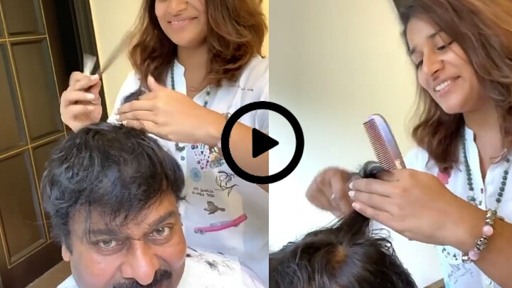 చిరంజీవి కి హేర్ కట్ చేసిన కూతురు సుష్మిత వీడియో